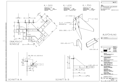 Draufsicht + Schnitte: