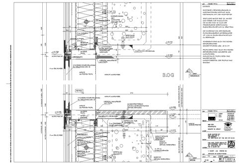 MOM Park Leitdetail: V- Schnitt Anschluss an Glaskaltfassade