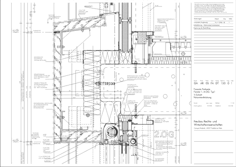 Campus, Frankfurt Leitdetail: Gebäude RuW V-Schnitt, oberer und unterer Anschluss Lochfenster