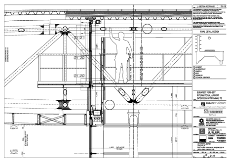 F.I.A. TERMINAL 2 Leitdetail: V-schnitt Tonnendach Wartungsgang